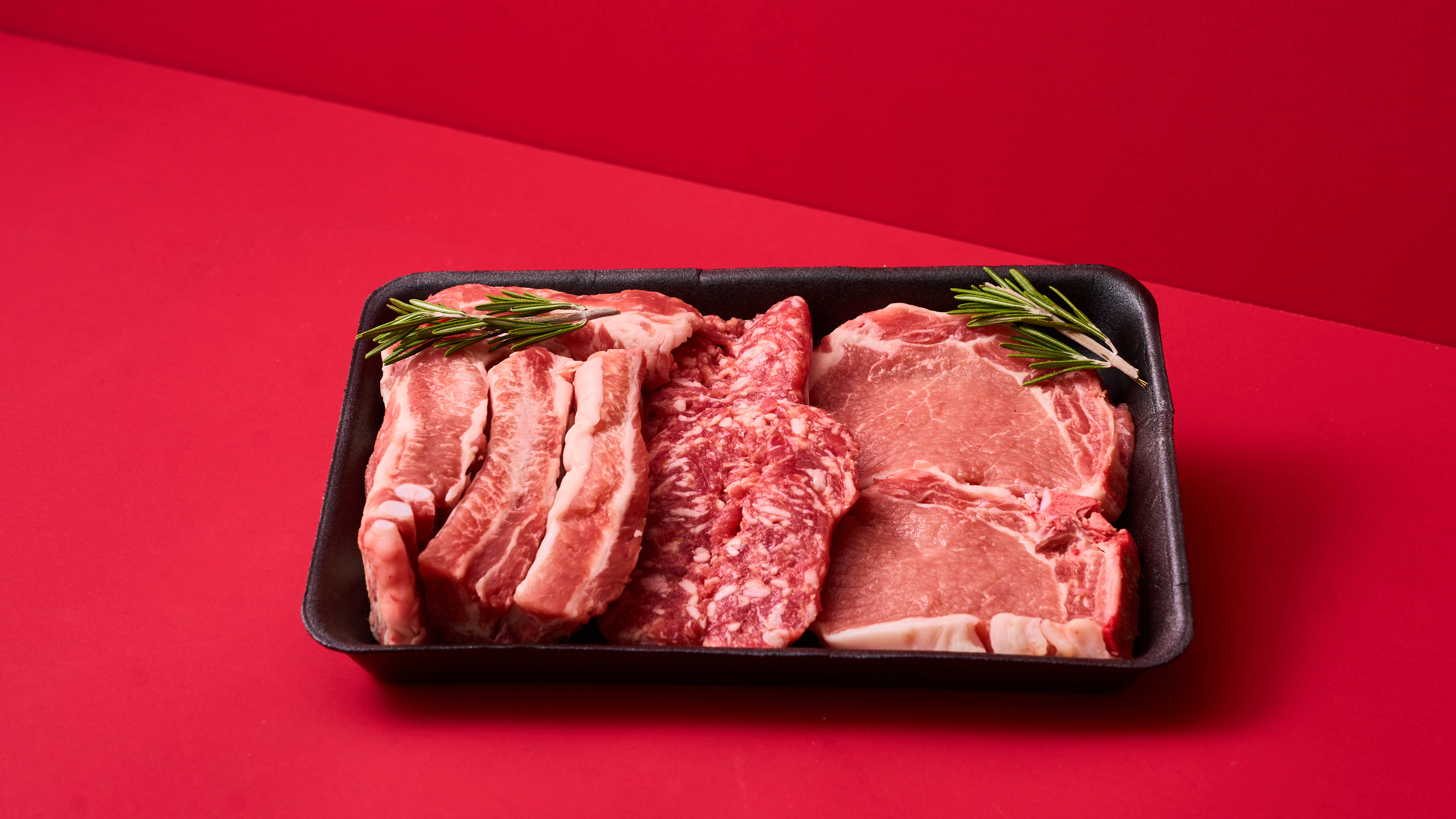 Su un tagliere quadrato, servi le 3 carni su 3 angoli e disponi i pimentos del padròn in mini pirofila posizionata sul quarto angolo.